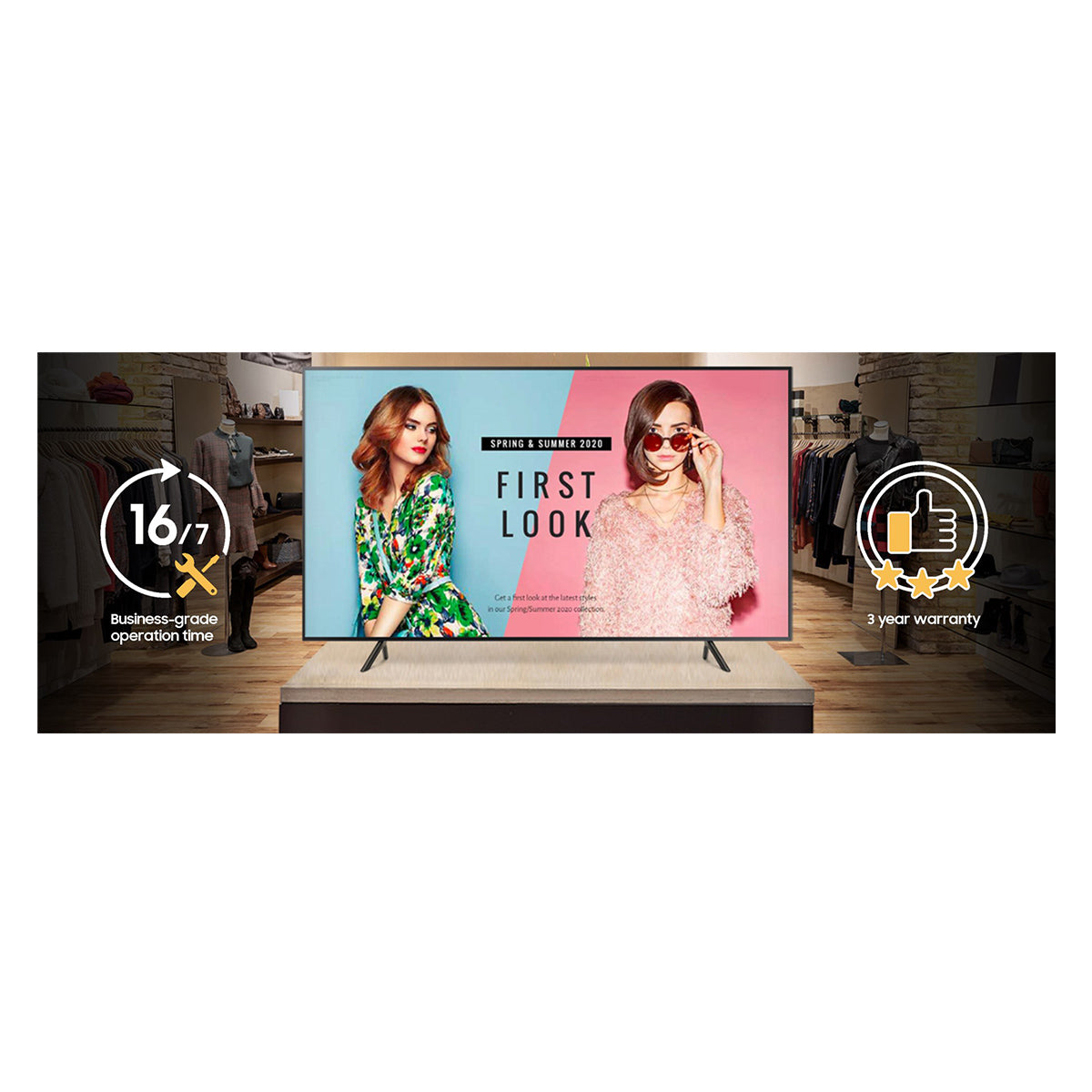 With the Samsung Pro TV, content becomes as dynamic as your customers. The Samsung Pro TV series offers powerful Crystal UHD picture quality, powered by a Crystal 4K processor. Every piece of content is rich, colorful and full of fine detail. Changing content is quick and easy. In three easy steps, you can upload dynamic content right from your phone or tablet with the Samsung Business TV app. You can count on Samsung’s Pro TV with a 16/7 operating time, while a 3-year warranty adds peace of mind. Do more with your TV with the Samsung Pro TV series displays.